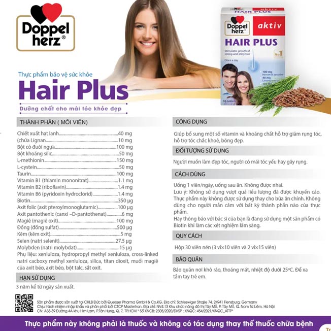 Mái tóc là một phần quan trọng tạo nên vẻ đẹp và sự tự tin của mỗi người. Tuy nhiên, dưới tác động của môi trường, hóa chất hay căng thẳng, tóc dễ trở nên yếu, xơ rối và gãy rụng. Để sở hữu mái tóc chắc khỏe, bóng mượt từ sâu bên trong, việc bổ sung dưỡng chất thiết yếu là vô cùng quan trọng. Bài viết này sẽ phân tích các thành phần Hair Plus chủ chốt và công dụng của một giải pháp tối ưu cho mái tóc của bạn.